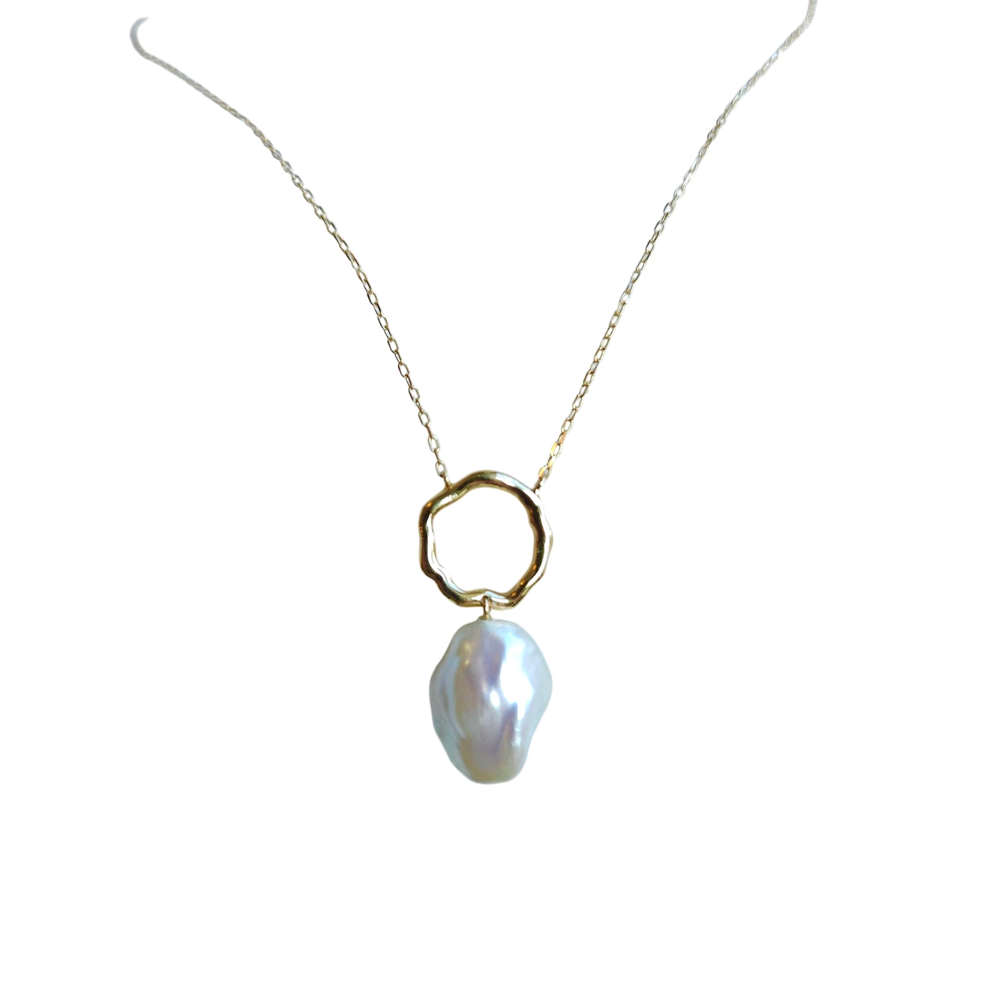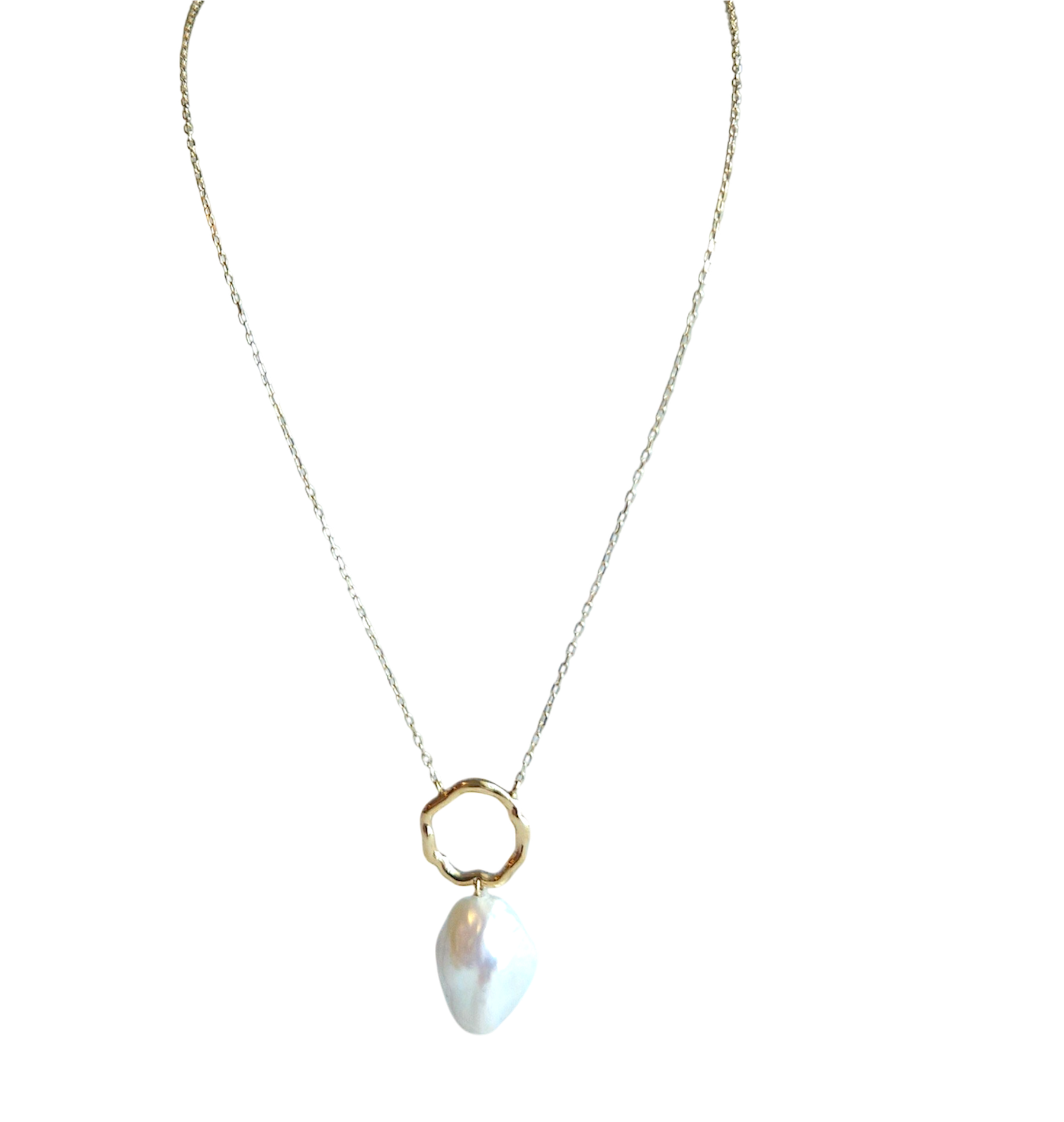 18kt Gold Chain with natural pearl pendant. 16-18in